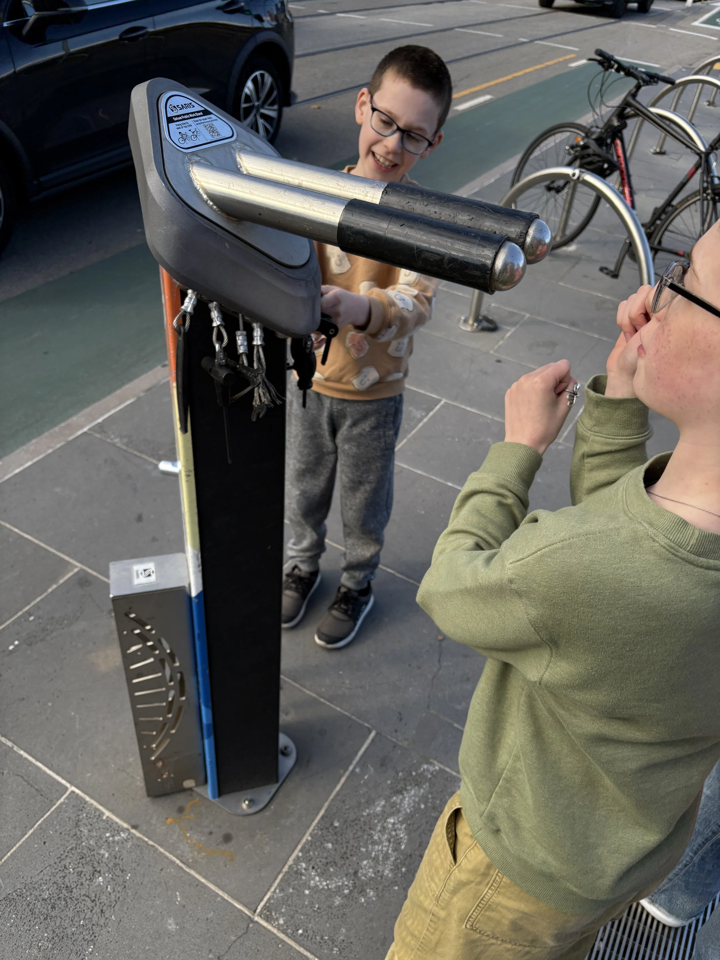 Bike Repair Stations. We saw these all over New Zealand, Australia, Copenhagen, and Amsterdam. They had all sorts of tools, pumps, and props to help you repair your bike.